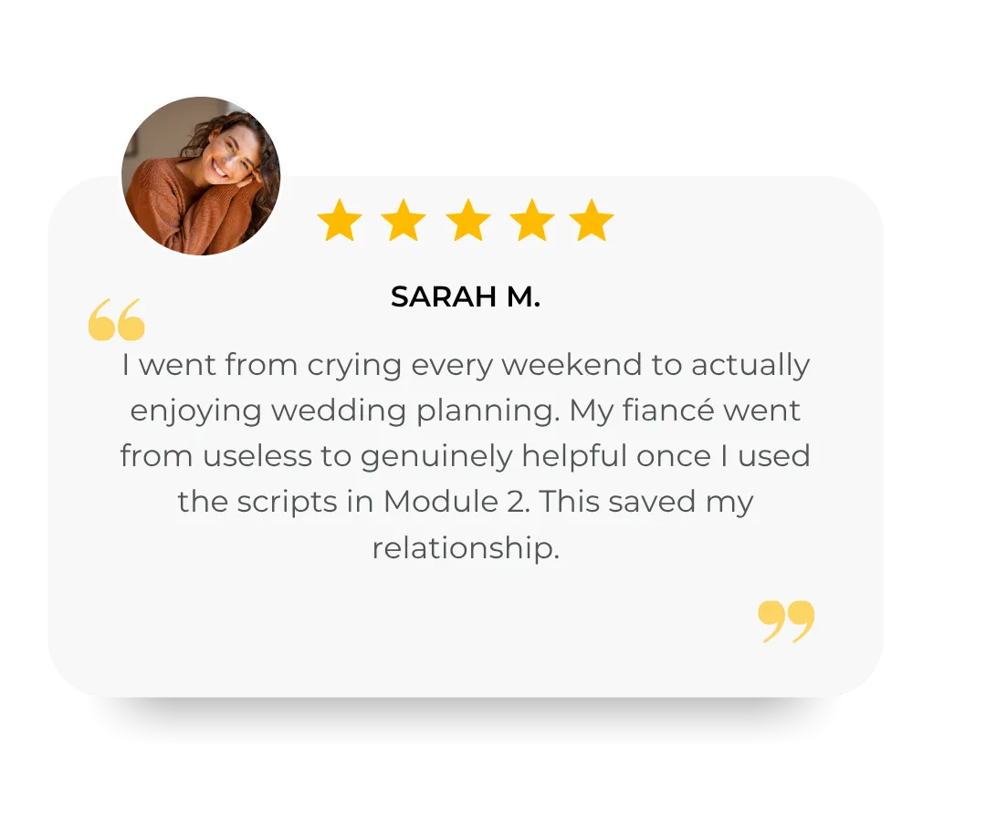 Doing 90% of the work while your fiancé claims he "doesn't know how to help"